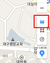 a. 지도에 있는 거리재기 아이콘을 선택합니다. 거리재기를 선택하면 마우스 아이콘이 자모양으로 변하는 것을 확인할 수 있습니다.